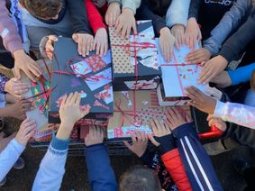 Aidés par l’équipe pédagogique, ils ont mis cadeaux et messages à destination des enfants dans ces boîtes surprises.