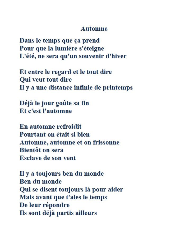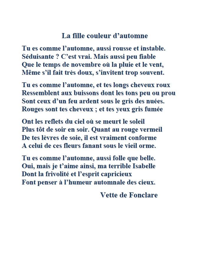 Sois le bienvenu, rouge Automne,