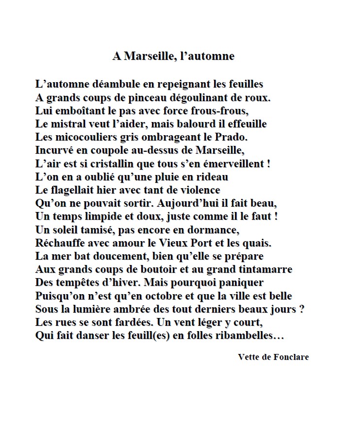 « L´inconscient joue des tours… Je cherchais des poèmes sur l´automne… et je vais toujours faire un tour sur son site, fermé maintenant… C´est là que j´ai appris son décès subit… Je l´aimais beaucoup, après l´avoir contactée pour avoir l´autorisation d´utiliser ses textes pour la vitrine. Son enthousiasme à cette idée nous avait liées et nous étions régulièrement en relation, et je lui ai même envoyé quelques photos de vitrines précédentes. Alors… hommage ou non ? Finalement, je pense que oui… Merci pour la remarque qui me fait encore plus prendre conscience de mon attachement. »