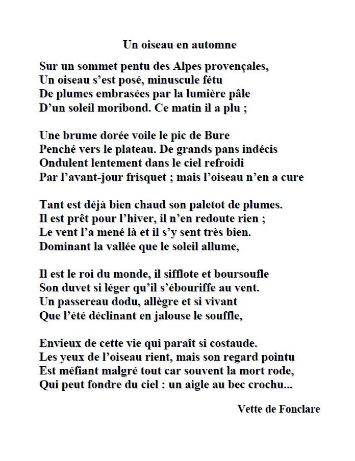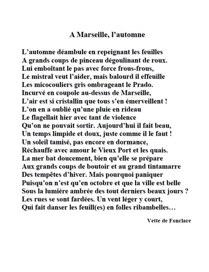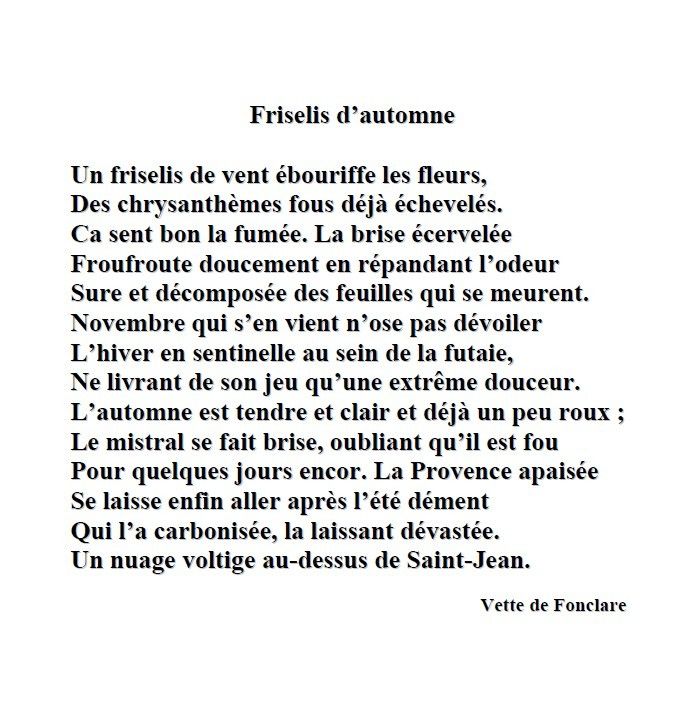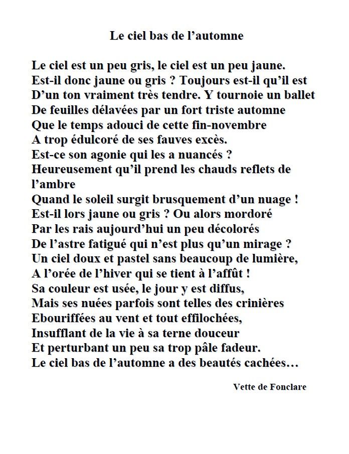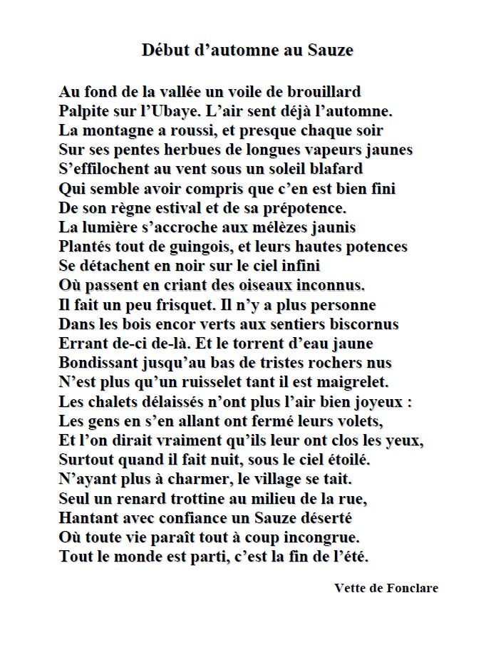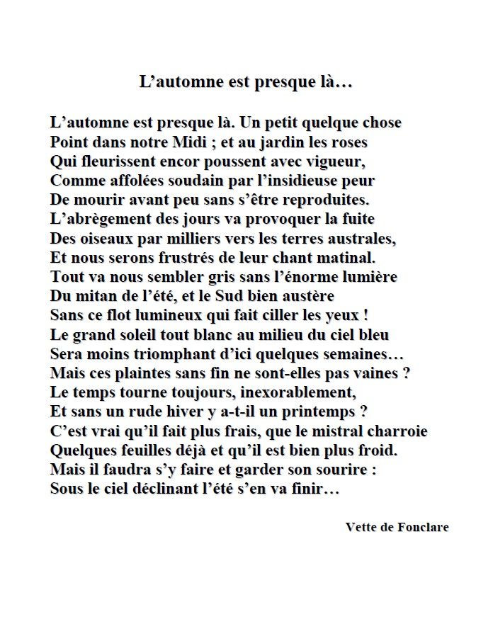 « L´inconscient joue des tours… Je cherchais des poèmes sur l´automne… et je vais toujours faire un tour sur son site, fermé maintenant… C´est là que j´ai appris son décès subit… Je l´aimais beaucoup, après l´avoir contactée pour avoir l´autorisation d´utiliser ses textes pour la vitrine. Son enthousiasme à cette idée nous avait liées et nous étions régulièrement en relation, et je lui ai même envoyé quelques photos de vitrines précédentes. Alors… hommage ou non ? Finalement, je pense que oui… Merci pour la remarque qui me fait encore plus prendre conscience de mon attachement. »