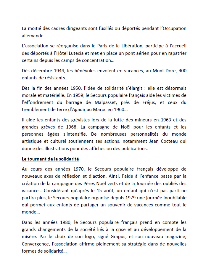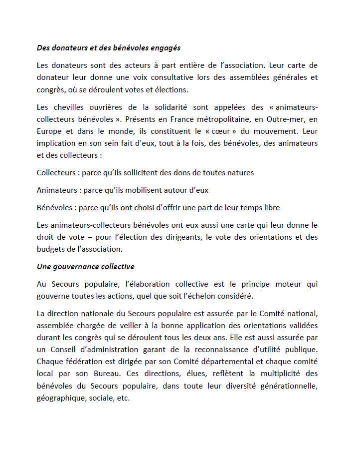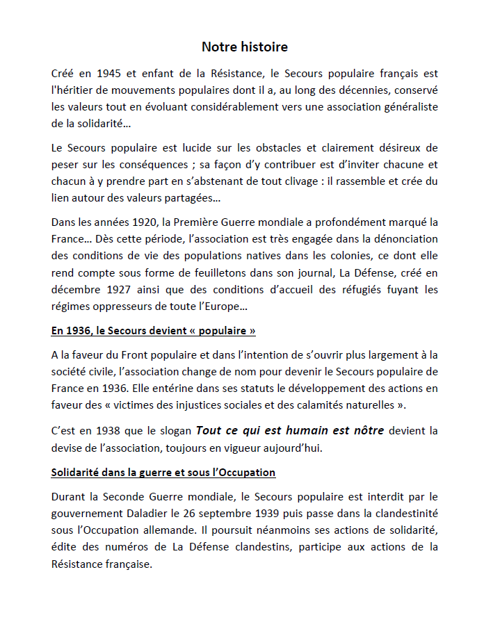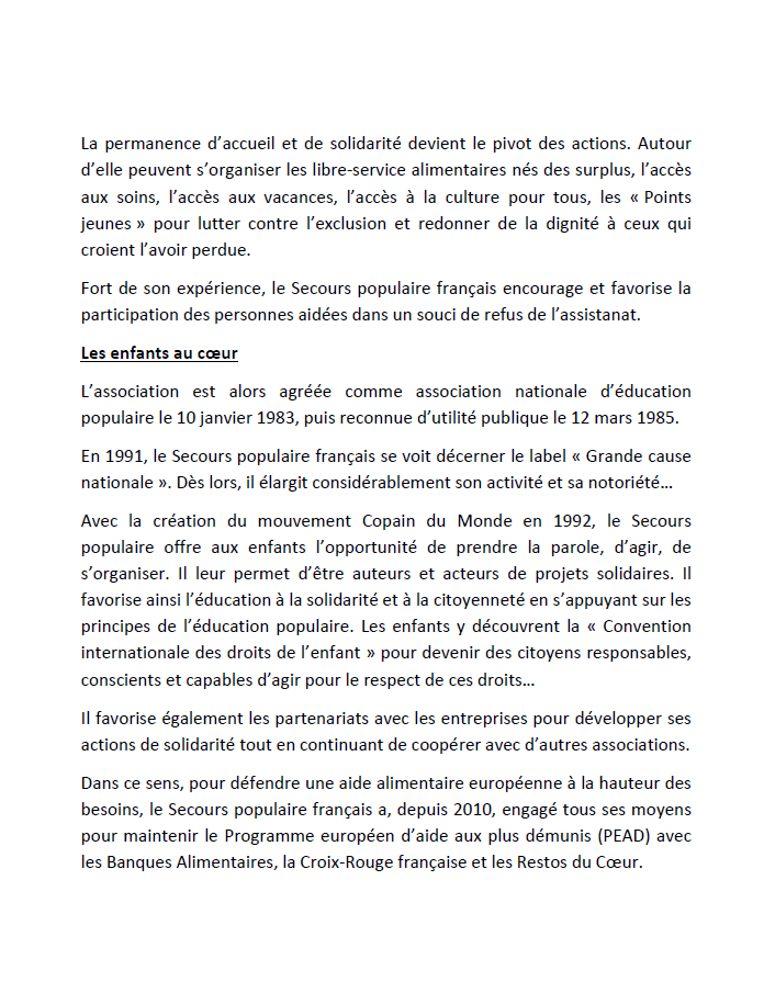 « En cette période marquée par un contexte d’aggravation des situations des personnes et le risque d’une société qui s’accommode des situations de pauvreté, de conflits et d’aléas climatiques, qui engendrent des souffrances, le Secours populaire français réinvente la solidarité en incitant tous les gens de cœur à en devenir acteurs…