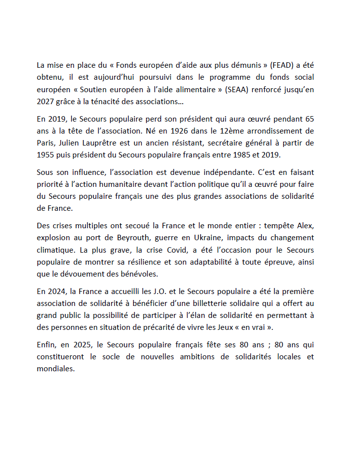 Cette année 2025, avec les 80 ans du Secours populaire, c’est l’occasion de rappeler l’urgence de la solidarité. Nous devons démontrer que la solidarité est plus forte que l’indifférence…