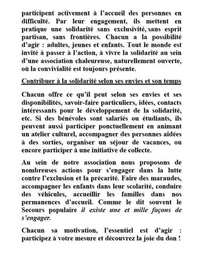 Parce que le Secours populaire permet à chacun d’offrir ce qu’il peut selon ses envies et ses disponibilités, savoir-faire particuliers, idées, contacts intéressants pour le développement de la solidarité.