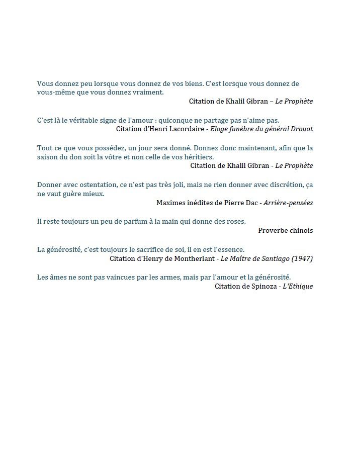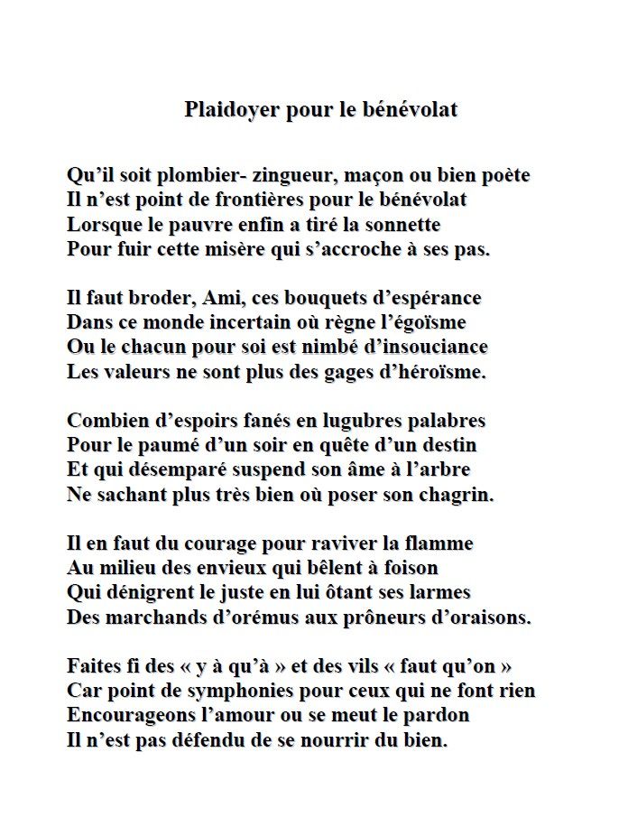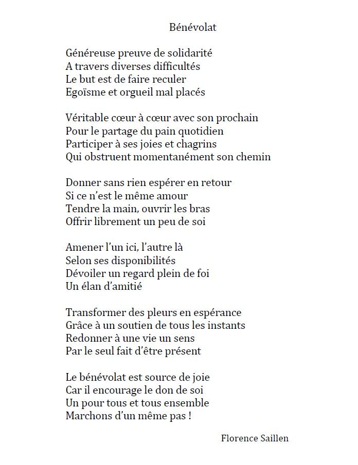 Parce que « Tout ce qui est humain est nôtre » et l’humain, c’est toi, c’est moi, c’est nous, quel que soit l’âge, la couleur, les envies, les possibilités de chacun. Et ensemble on peut faire de grandes choses pour l’autre et pour soi… (D.)