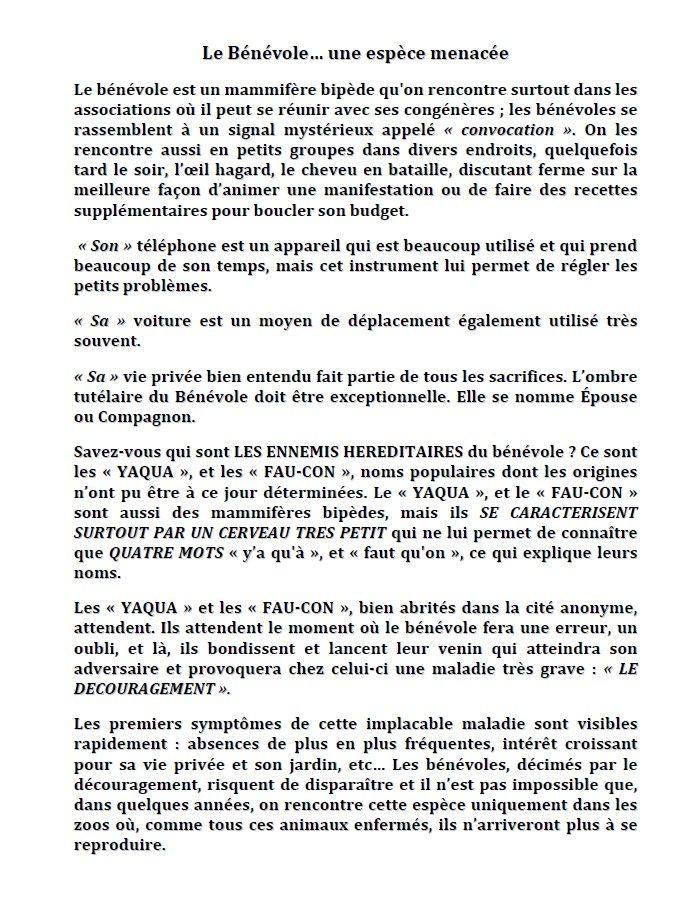 Beaucoup de raisons… Donner de mon temps pour les autres ; garder un lien social une fois à la retraite ; aider les personnes dans le besoin. (D.)