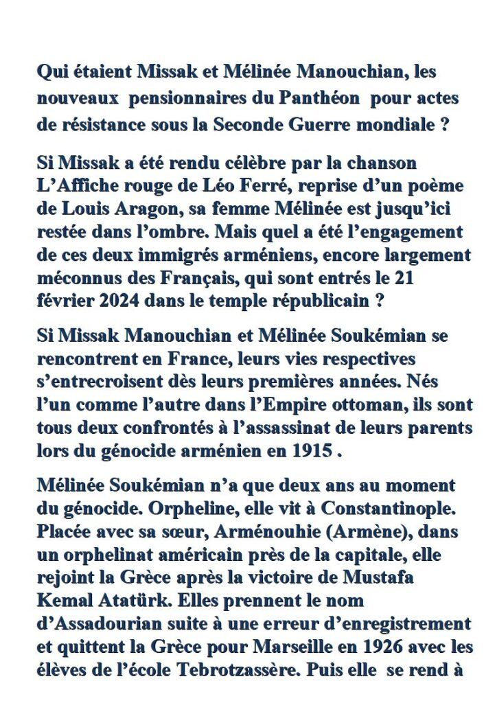 Thème : Mélinée et Missak Manouchian au Panthéon