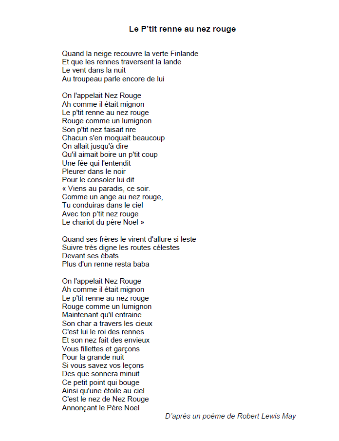 * Rudolph, le 9ème renne au nez rouge, est, au départ, une histoire populaire américaine écrite en 1939 par Robert L. May, puis une chanson, Rudolph the Red-nosed Reindeer, écrite par Johnny Marks en 1949.
