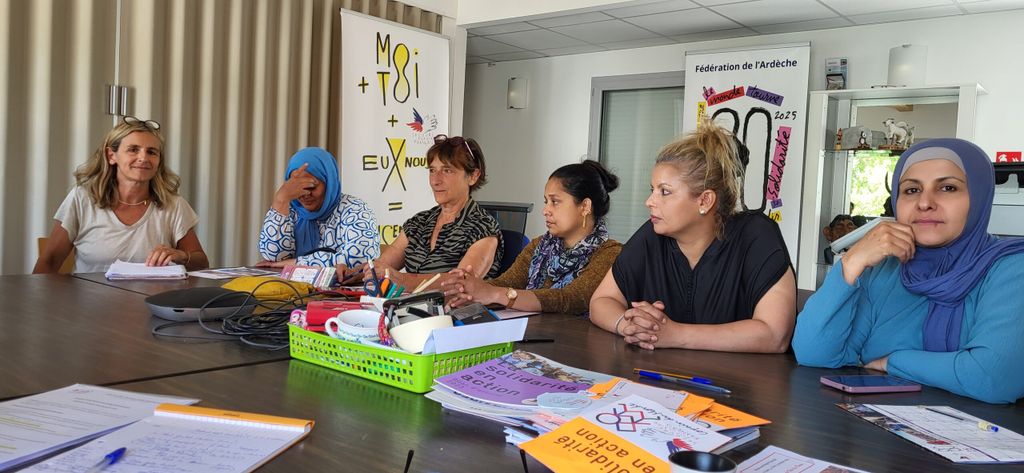 Préparation avec le collectif de femmes du Secours populaire de Privas du week-end répit parental en présence d’Hélène Graillat d’Ardèche Tourisme