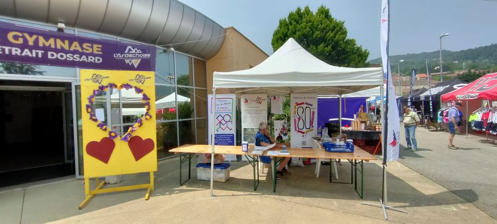 Dans la suite de la convention départementale signée avec l’Ardéchoise, nous avons tenu un stand sur un emplacement stratégique.