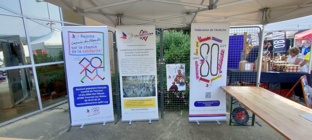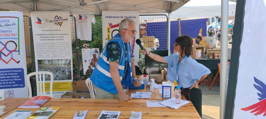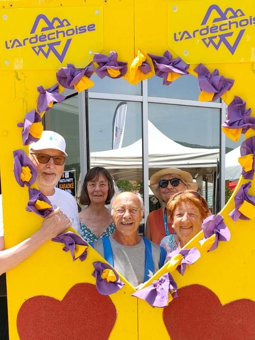 Durant 4 jours des bénévoles des comités d’Annonay, de Tournon et de l’antenne de St Félicien/St Victor ont accueillis les visiteurs proposant le pin’s des 80 ans, un gobelet à nos couleurs, des tee-shirts, des casquettes , des maillots collector de l’Ardéchoise donnés par François Caussèque, de la documentation et des réponses aux questions posées.
