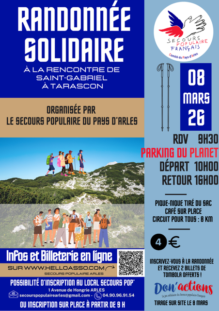 Le dimanche 8 mars 2026, le Secours Populaire du Pays d’Arles organisait sa randonnée solidaire annuelle sur les sentiers de Tarascon. Malgré des conditions climatiques capricieuses, l’événement a confirmé l’engagement des participants envers nos actions de solidarité.