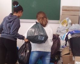 Leur professeure nous précise que l’année dernière trois gros cartons de jouets et près de 100kg de vêtements ont été collectés pour le Père Noël vert. Nos bénévoles se sont rendus sur place pour les récupérer.