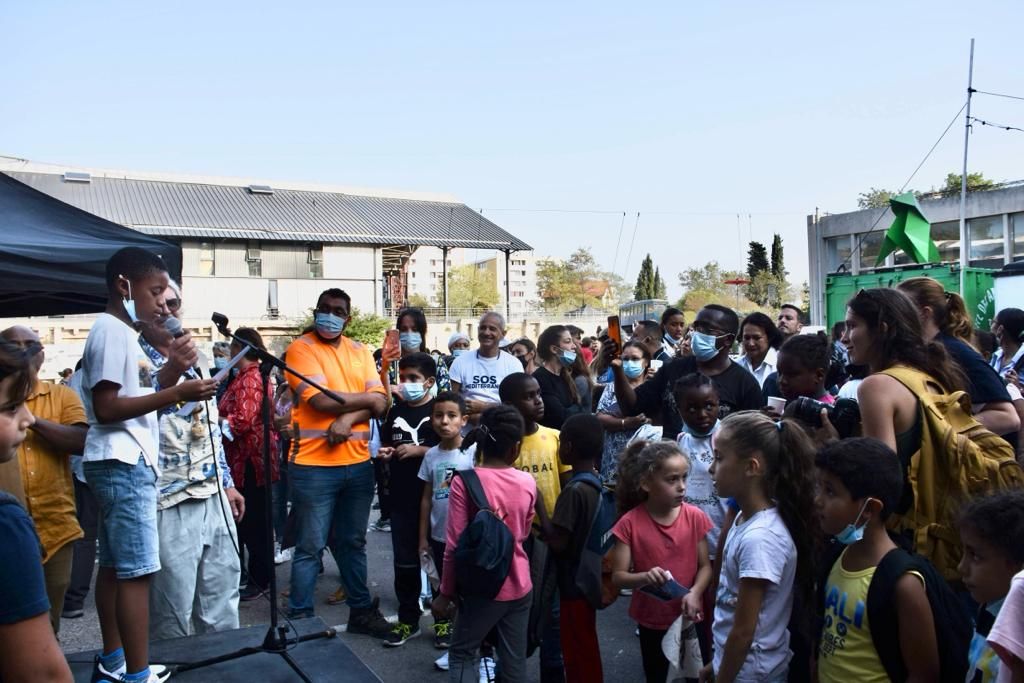 En amont, des ateliers de sensibilisation d’une durée de 3 semaines avaient pour thèmes : l’exil, les traversées en mer et ses drames, l’ immigration, les guerres, la maltraitance des enfants etc . Ils ont permis aux enfants de réaliser des projets artistiques comme des fresques symbolisant la réalité du sauvetage en mer, des constructions à partir de bouteilles en plastique dans lesquelles ils avaient glissé des messages d’espoir et de solidarité, ou encore l’apprentissage d’une chanson avec la Cie Générik Vapeur. En point d’orgue, une belle lettre fraternelle a été lue à Amal, toute émue de recevoir tant de jolis messages d’espoir et de soutien.
