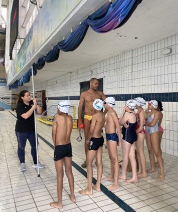 L’équipe du Cercle des nageurs a offert un bonnet et un gouter à chaque enfant. Ils ont eu la visite surprise de Mikael Bodégas, poloïste sélectionné dans l’équipe de France pour les jeux olympiques, qui les a rejoints spontanément à la fin de son entrainement pour échanger avec eux. Ils sont repartis avec des étoiles dans les yeux et des rêves de champion !
