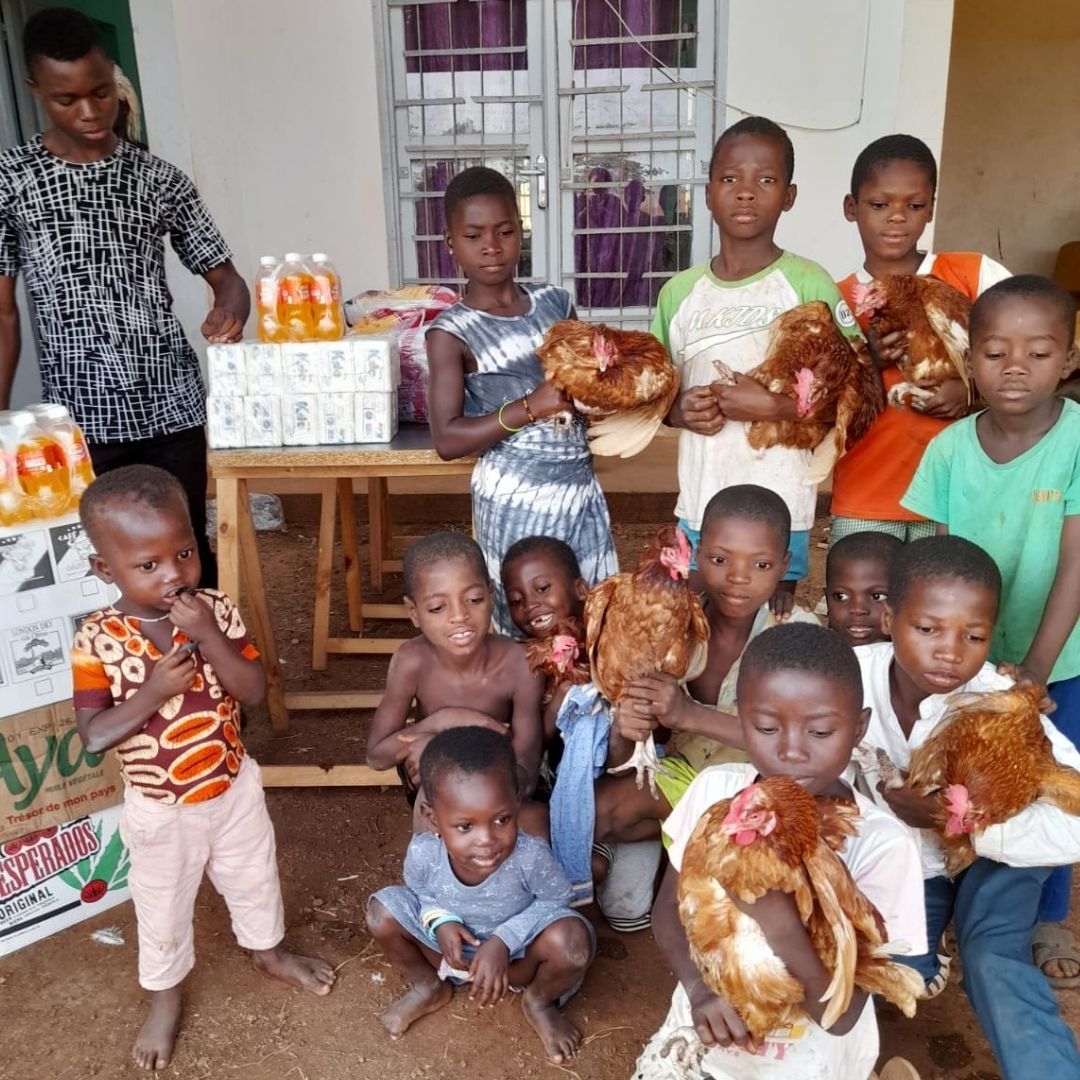 Le 25 décembre, l’association Regard solidarité a assuré une distribution aux familles de Benanou en Côte-d’Ivoire. Et pour améliorer l’ordinaire un poulet a complété le panier de produits alimentaires : riz, huile, etc.,