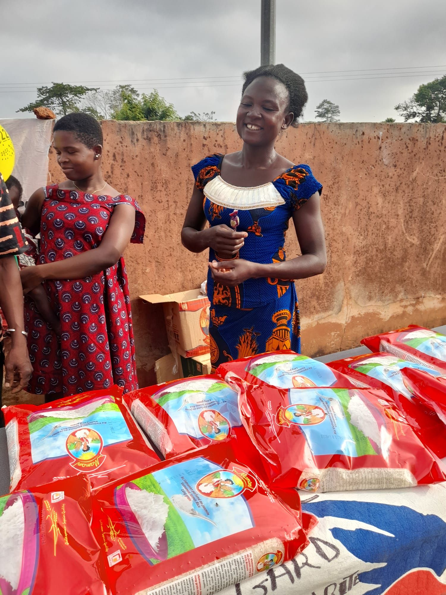 9 sacs de riz de 25 kg, un carton de 24 bouteilles d’huile, 2 packs de jus de fruit coktail.