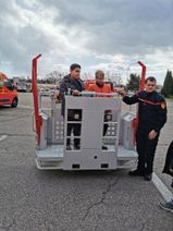 Arrivés sur place ils ont pu rencontrer les compagnies qui s’occupent des feux de forêt et des feux urbains. A leur grande joie ils ont pu monter à bord d’un camion et ont été très impressionnés quand les pompiers ont déroulé la grande échelle mais aussi ravis de pouvoir monter l’un après l’autre dans la nacelle puis dans l’ambulance des sapeurs pompiers.