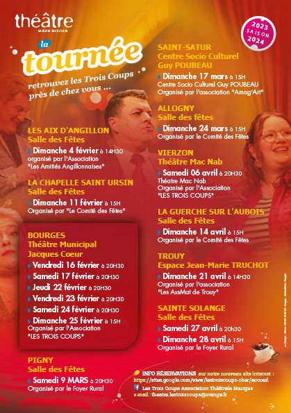 L’Association Théâtrale LES TROIS COUPS organise un spectacle au théâtre Jacques cœur à Bourges le vendredi 16 février.