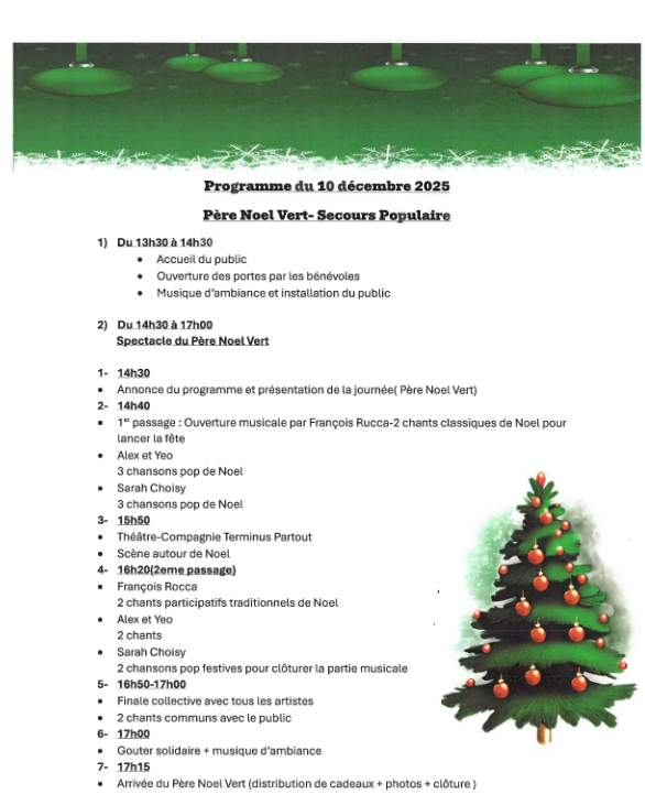 Début du spectacle et remise des cadeaux de 14h30 à 17h