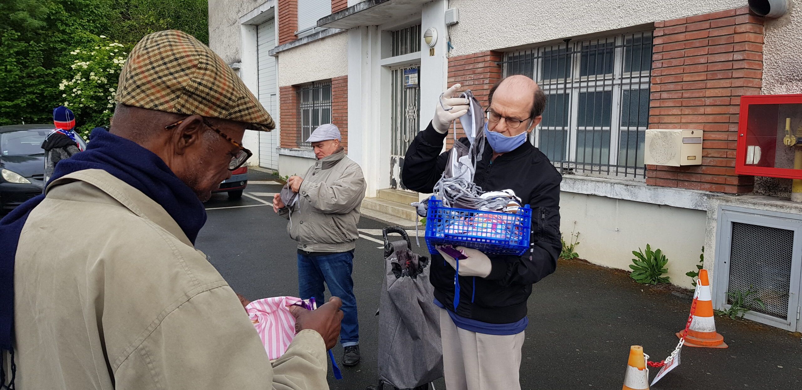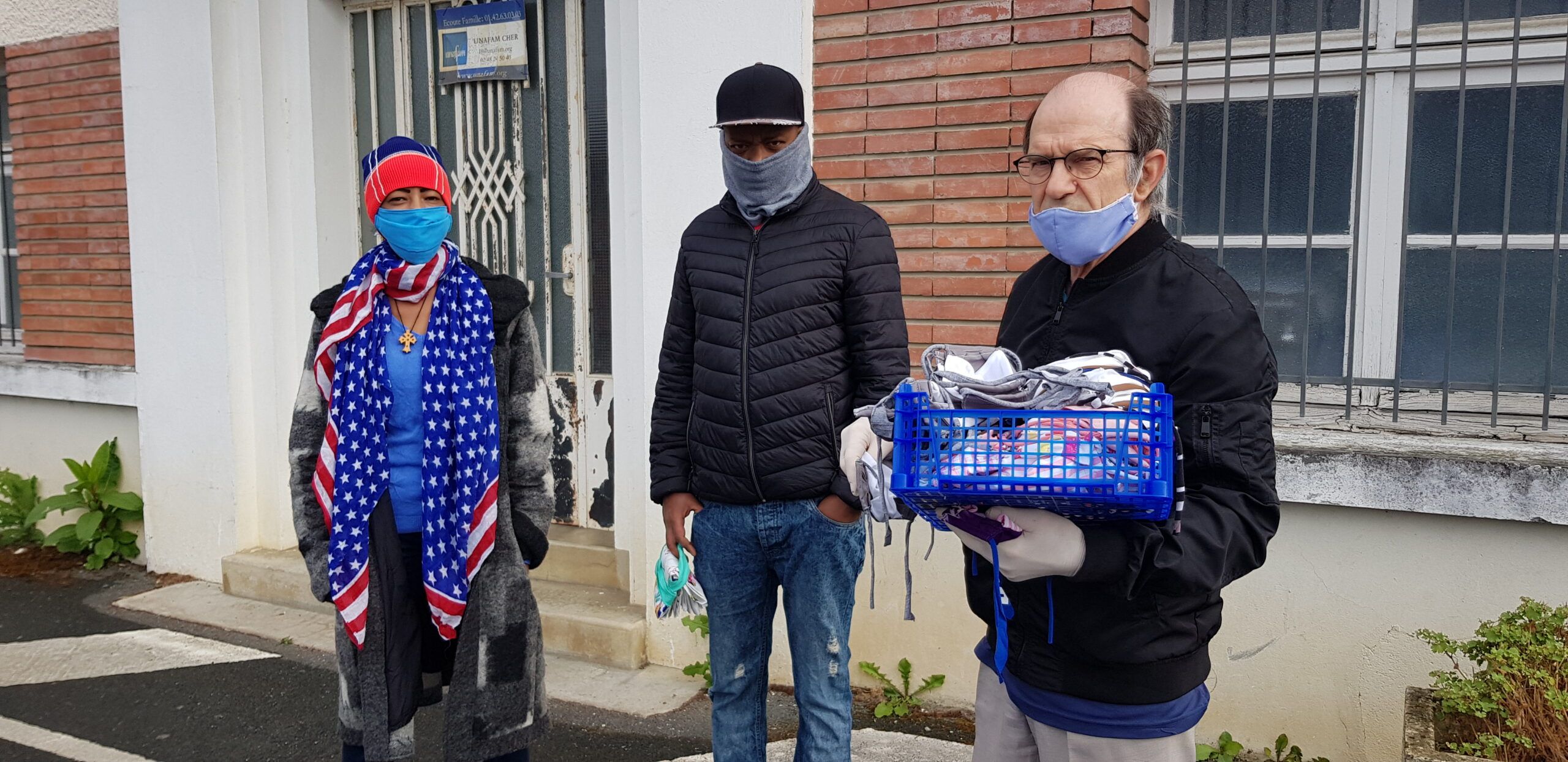 Des masques confectionnés par HAYLE Biniyam et GDEY Alem réfugiés érythréens, ont été distribués samedi, lors de la remise des colis alimentaires aux personnes accueillies devant les locaux du Comité de Vierzon. Une centaine de masques ont déjà été confectionnés par ces bénévoles.