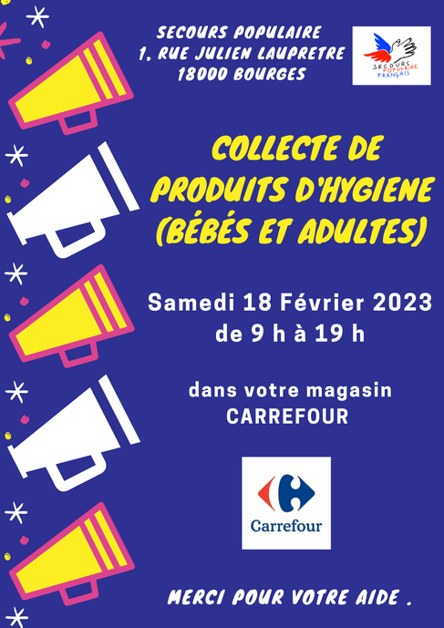 Collecte de produits d’hygiène Carrefour Bourges 18 février
