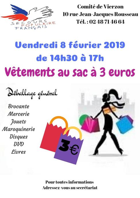 Secours populaire, Comité de Vierzon, déballage général, vendredi 8 février, 14h – 17h.
