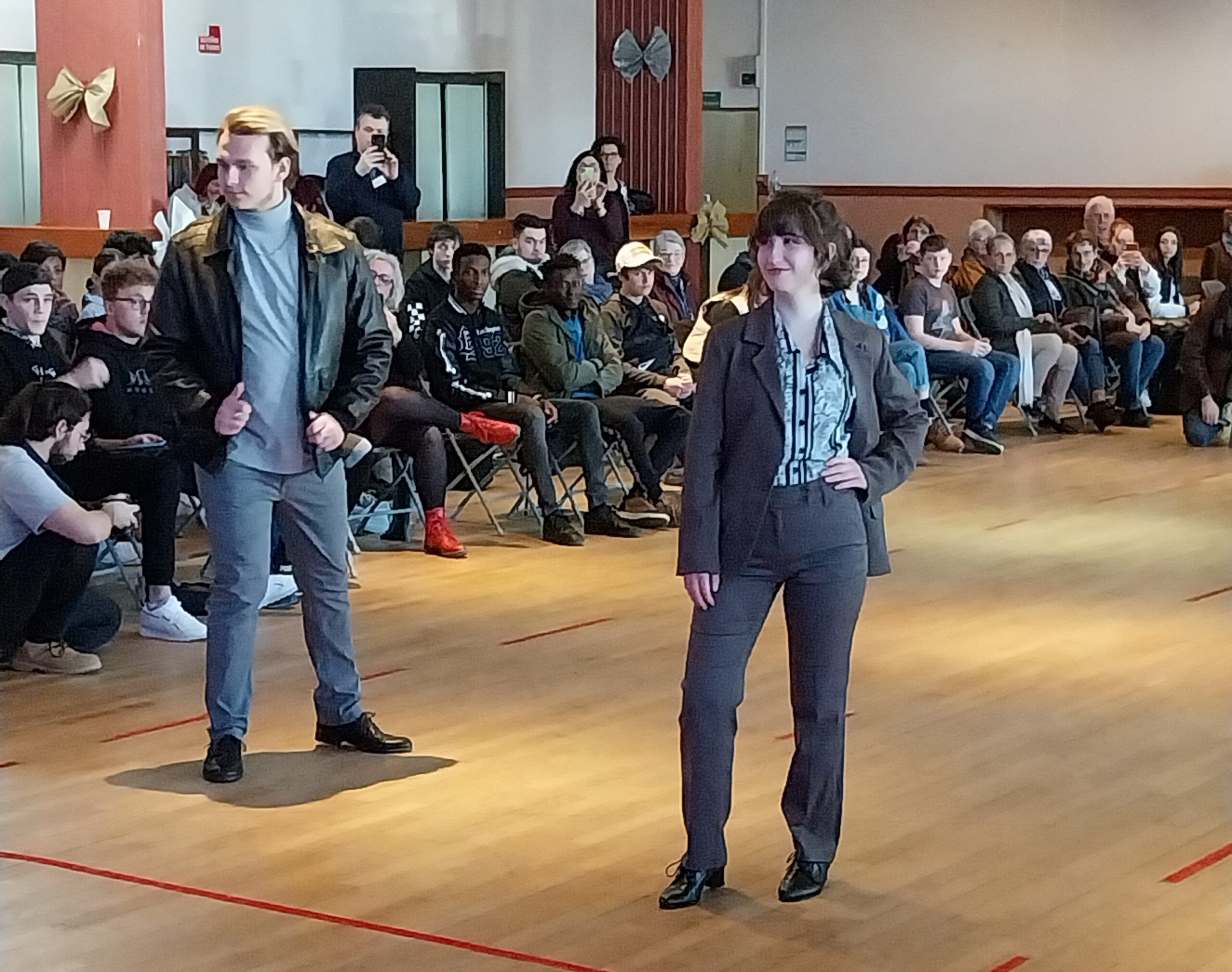 Pendant 20 mn, les jeunes ont défilé avec trois tenues. La première, composée avec des habits de la Croix-Rouge, la deuxième avec ceux du Secours populaire et la troisième avec un mélange de vêtements des deux associations.