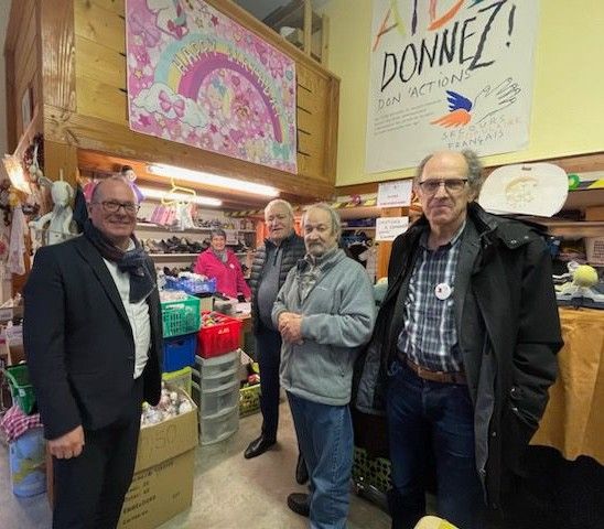 Photo d’archives : Jacques (à droite) lors de la visite du maire à l’antenne du Secours populaire de Saint-Amand Montrond