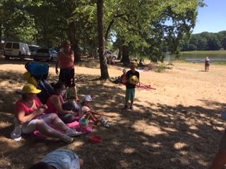 Après-midi au lac du bourdon ou la baignade était déconseillée / cyanobacteries . Nous avons communiqué cette information aux familles en leur disant que « si leurs enfants allaient se baigner , ça serait sous leur seule responsabilité« . Seuls 3 enfants ne sont pas baignés!