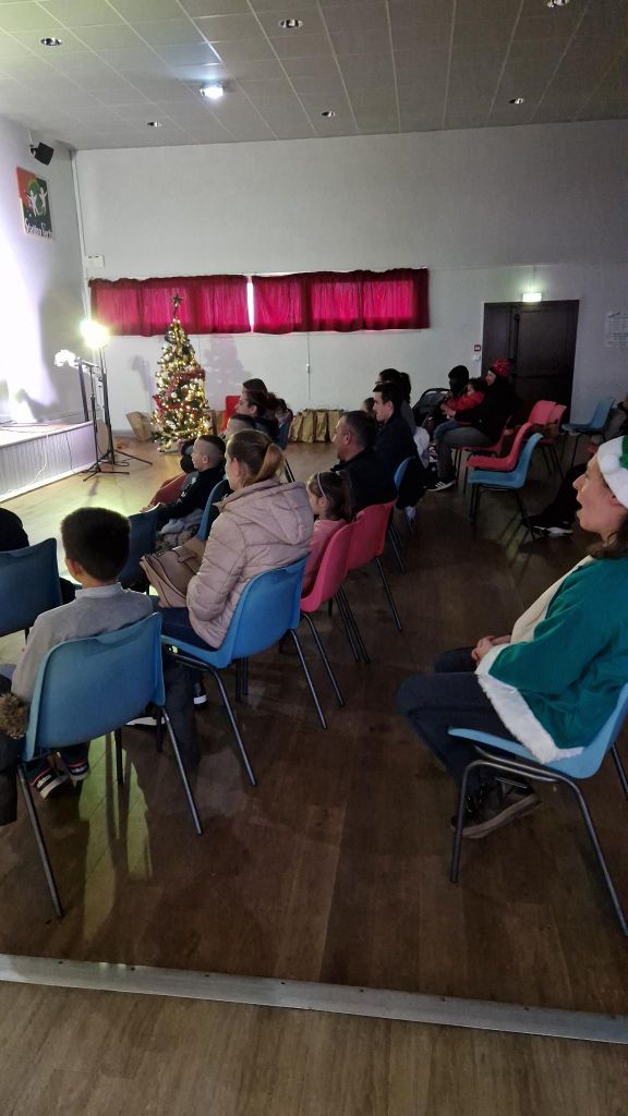 Après ce spectacle d’une bonne heure, une remise de cadeaux par le Père Noël Vert du Secours populaire et son adjointe, jouets et jeux neufs, livres, peluche, était au programme, avant de passer au délicieux goûter.