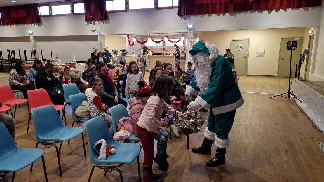 Après ce spectacle d’une bonne heure, une remise de cadeaux par le Père Noël Vert du Secours populaire et son adjointe, jouets et jeux neufs, livres, peluche, était au programme, avant de passer au délicieux goûter.
