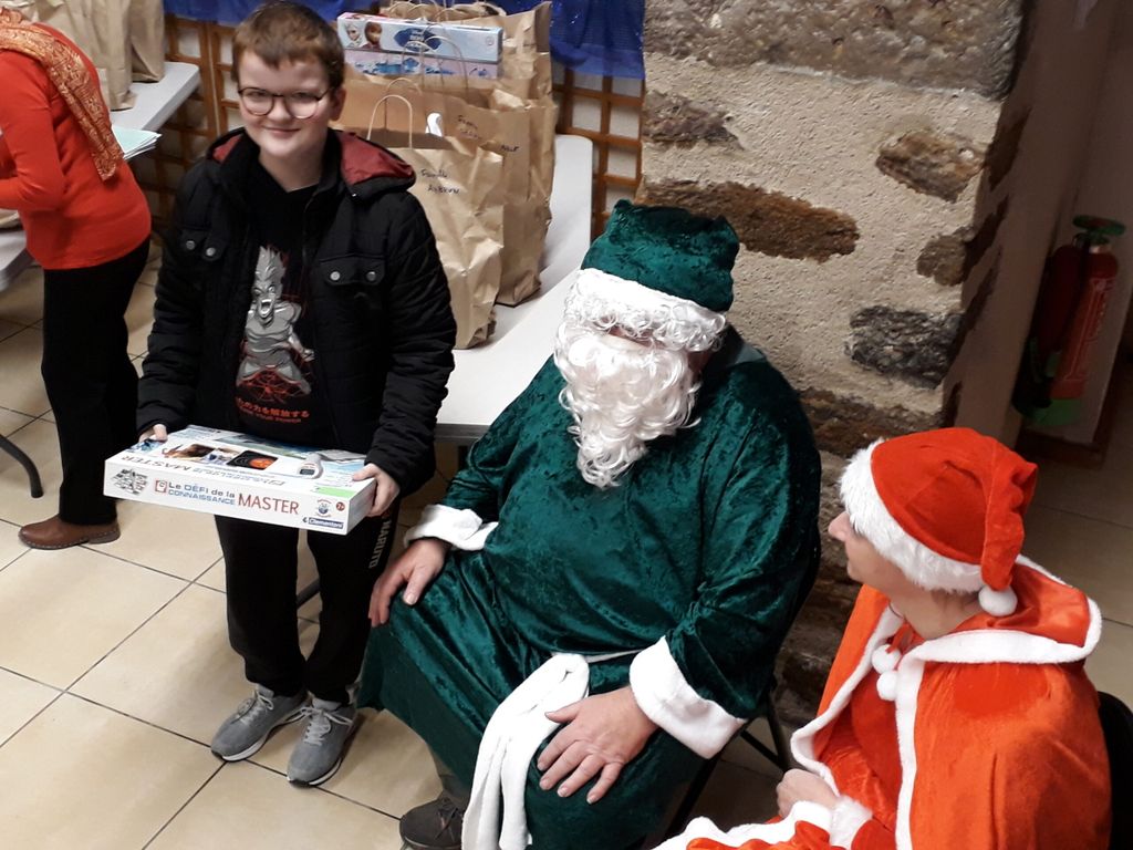 Après plus d’une heure de spectacle rondement mené, sous le signe de l’humour, un goûter était prévu, avec de nombreuses pâtisseries confectionnées par les bénévoles, des boissons, des mignardises. Un jouet neuf, un livre et une peluche étaient également offerts aux enfants par le Père Noël Vert et son assistante.