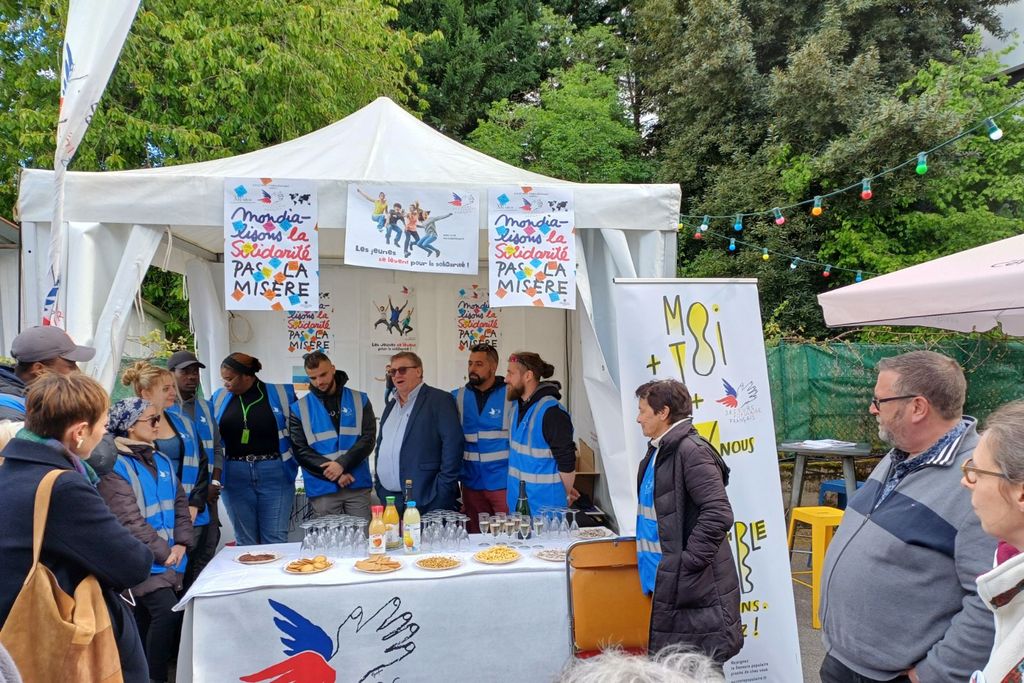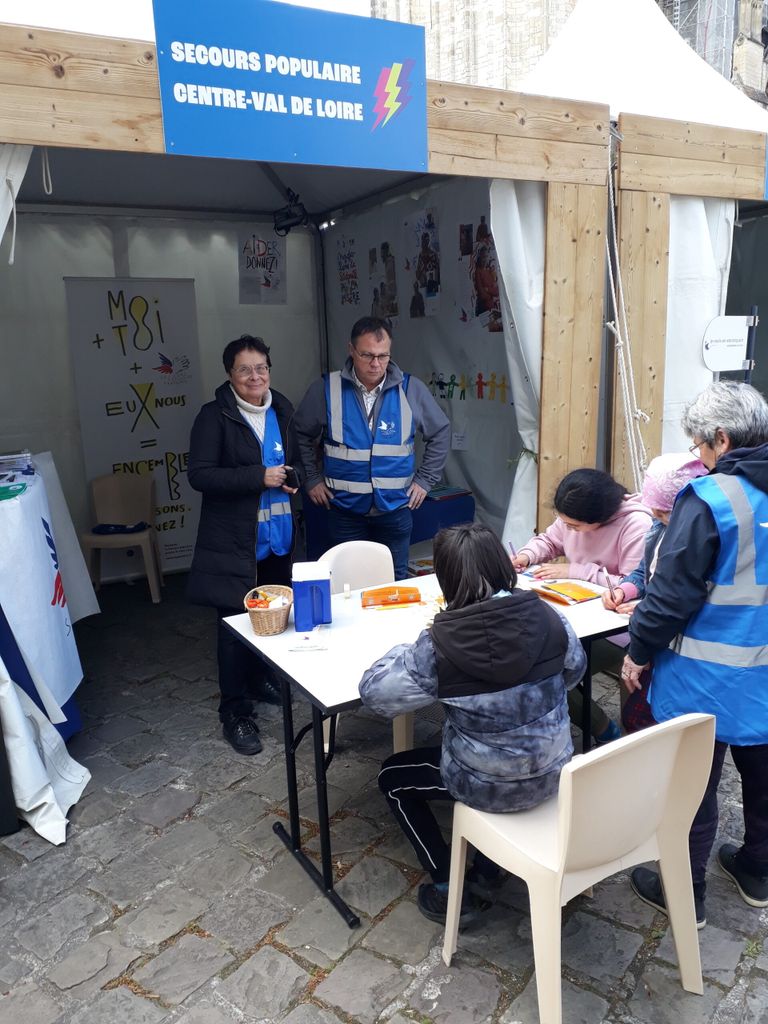 Un autre stand est installé dans les allées du festival, face à la médiathèque. Il est tenu par des jeunes bénévoles, il a été inauguré ce mardi à 17h en présence de Christian Causse directeur des événements, de la mobilisation et de la logistique au Secours populaire Association nationale, de personnalités élues et d’administrations (Magalie Bessard conseillère régionale, Marie-Hélène Biguier, Hugo Lefelle maires adjoint.e.s à Bourges et conseiller départemental du Cher, Charles Collin Président de la CAF du Cher).