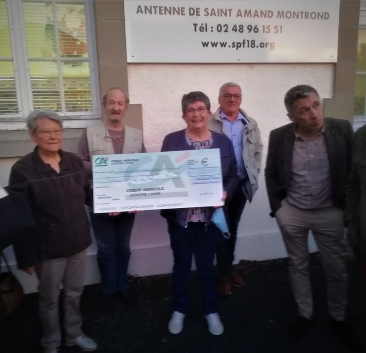 En ce jeudi 6 octobre, le président de Sam City Sylvain Lesage, est venu remettre à l’antenne de Saint Amand du Secours populaire un chèque de 2200 € provenant de la vente des parts de la galette confectionnée le 2 juillet dernier par cinq artisans dont le talent les a fait devenir recordmen du monde de la plus grande galette « aux patates », spécialité éminemment berrichonne.