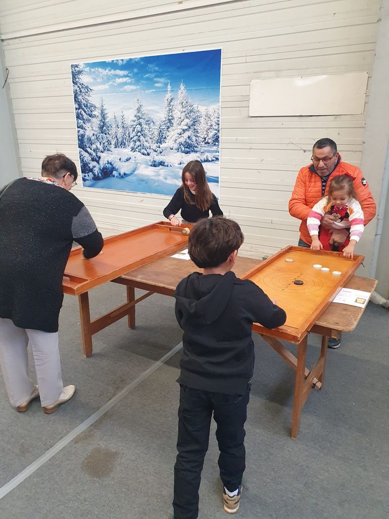 Tout d’abord, les enfants, plus d’une centaine avec leurs familles, ont participé aux différents jeux en bois mis à leur disposition, il s’agissait de jeux d’adresse, soit des billes à placer dans des trous, des palets à lancer dans le camp de l’adversaire et autres parties de boules…