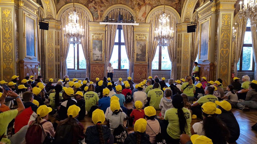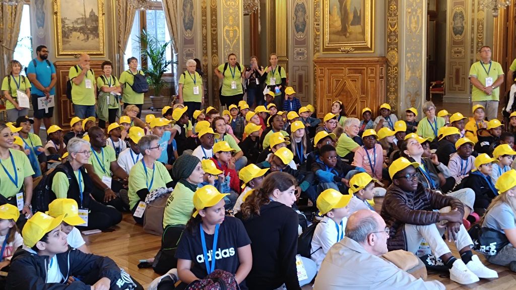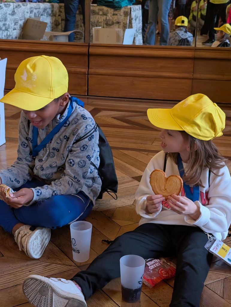 Dès leur arrivée à Paris vers 8h30, une visite guidée à l’hôtel de ville était prévue. Tous ont été accueillis dans le salon d’honneur par la secrétaire générale de la mairie avec petits déjeuners à la clé. Une guide conférencière spécialement détachée à cet effet a expliqué le fonctionnement, l’histoire du bâtiment, ce qui se déroule dans les salons … avec quelques anecdotes. Des maillots des Jeux olympiques 2025 ont été remis à tous les participants, ce qui a fait des envieux tout au long de la journée.