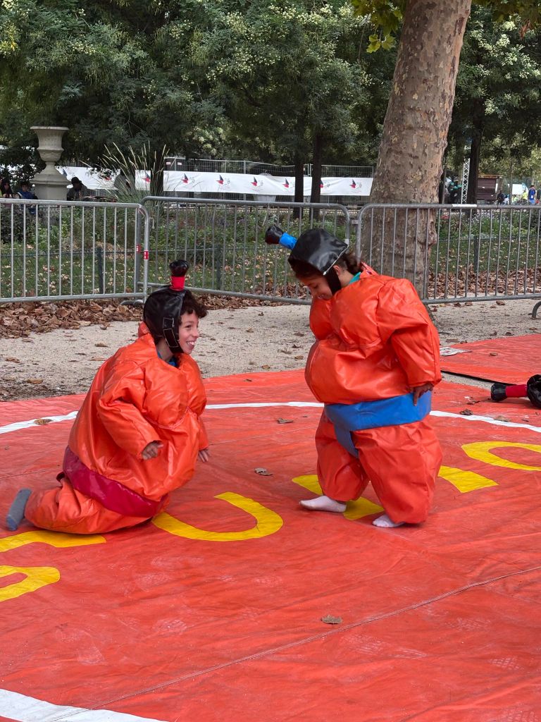 Après un trajet en métro pour rejoindre le Champ-de-Mars, grand moment aussi pour beaucoup, un pique-nique était organisé, avec un menu végétarien. Ce fût ensuite la découverte des très nombreuses animations, Plus de 160 jeux, ateliers créatifs et animations sportives ont fait vibrer les 40.000 enfants réunis sur le Champ-de-Mars : escalade, laser game, tir à l’arc, escrime, escalade… et bien plus encore. Tony Estanguet et de nombreux athlètes internationaux sont venus à la rencontre des enfants pour dialoguer et bien entendu pour signer de nombreux autographes.