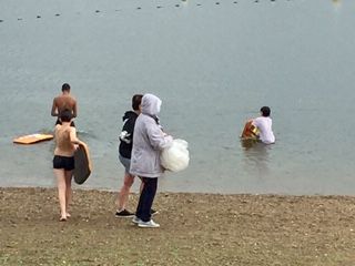 Le matin , les plus téméraires se sont baignés tandis que les plus petits jouaient avec des jeux de plein air.