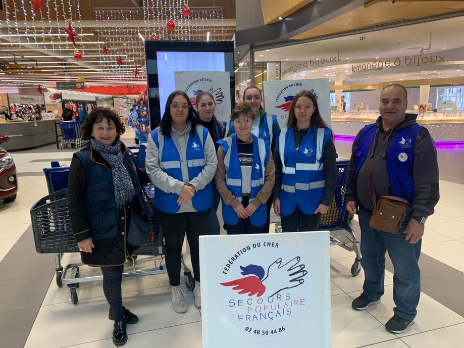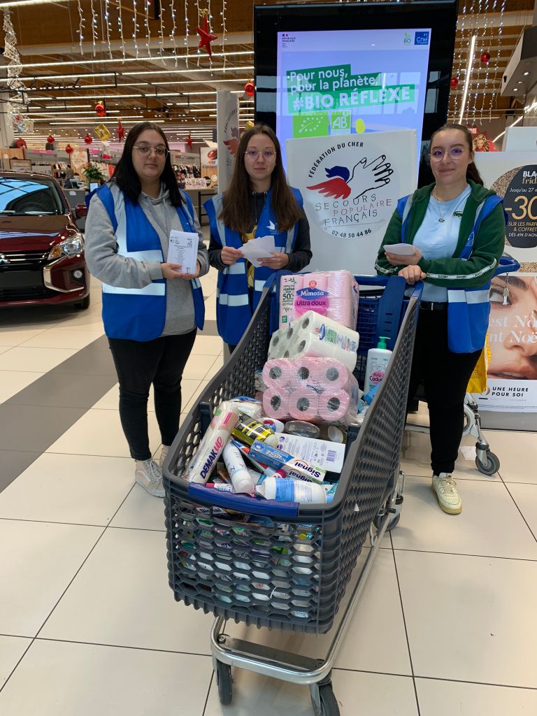 En route pour la solidarité envers les plus démunis au Centre Commercial Leclerc à Saint-Doulchard, pour la troisième année, cinq élèves du lycée professionnel de Bengy-sur-Craon ont organisé une collecte de produits d’hygiène enfants et adultes, au profit du Secours populaire, le 13 novembre 2023, dans le cadre de leurs études.