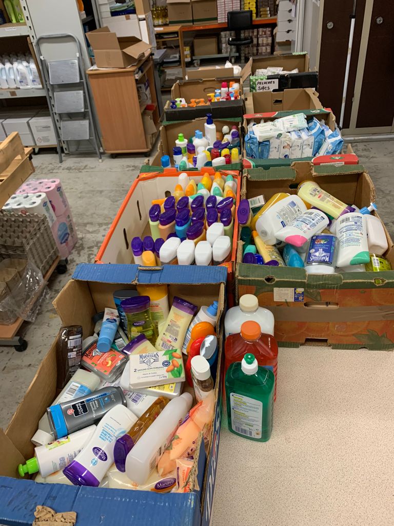 C’est plusieurs chariots remplis de produits d’hygiène qui ont été collectés tout au long de la journée.