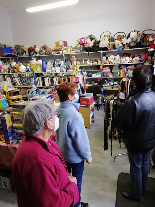Mais un peu plus loin, la cour du Secours populaire n’était pas le décor d’un roman, c’était dans une réalité plutôt grise que se dissolvaient les quelques rêveries romanesques que l’on aurait pu avoir. Le matin, le camion n’avait pu démarrer, il avait fallu faire la ramasse dans les supermarchés de la ville avec la voiture d’un bénévole et la récolte avait été plutôt maigre : un peu de pain, quelques viennoiseries et pas grand-chose d’autre. Qu’importe, à l’intérieur de l’ancienne école, l’ambiance était aussi studieuse qu’elle avait pu l’être autrefois dans les anciennes salles de classe. Des vêtements impeccablement rangés et une brocante très diversifiée attendaient les demandeurs, trop rares au gré de Claudette dont les comptes étaient vite faits. Les quelques visiteurs étaient cordialement accueillis par les bénévoles qui les conseillaient sur les modèles et les tailles disponibles. Une ambiance feutrée, un local préparé avec beaucoup de soin par les bénévoles, à l’antenne de Saint-Amand, l’accueil se fait dans des conditions optimales.