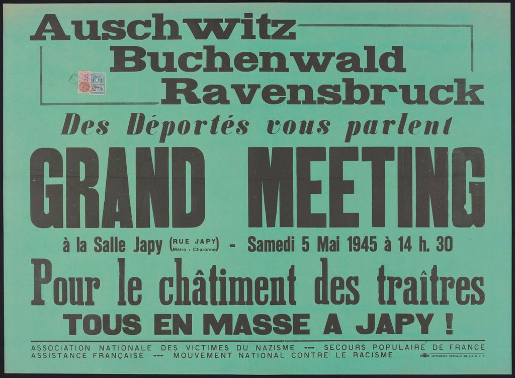 Tract annonçant la rencontre avec les déportés coorganisée par le Secours populaire le 5 mai 1945 à Paris. (National Library of Australia)