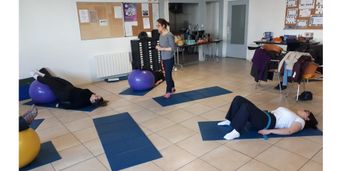 Une petite dizaine de personnes « en situation d’aides » ont participé à une séance de Pilates, jeudi 27 février dans les locaux du siège du Secours populaire, rue de la Brot à Dijon.