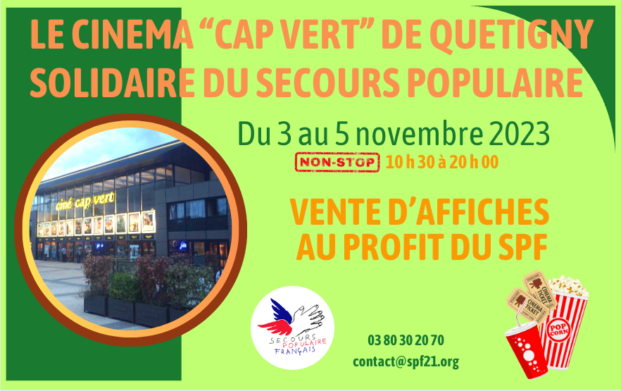Le cinéma "Cap vert" de Quetigny solidaire du Secours populaire organise une vente d'affiches de cinéma au profit du Secours populaire.