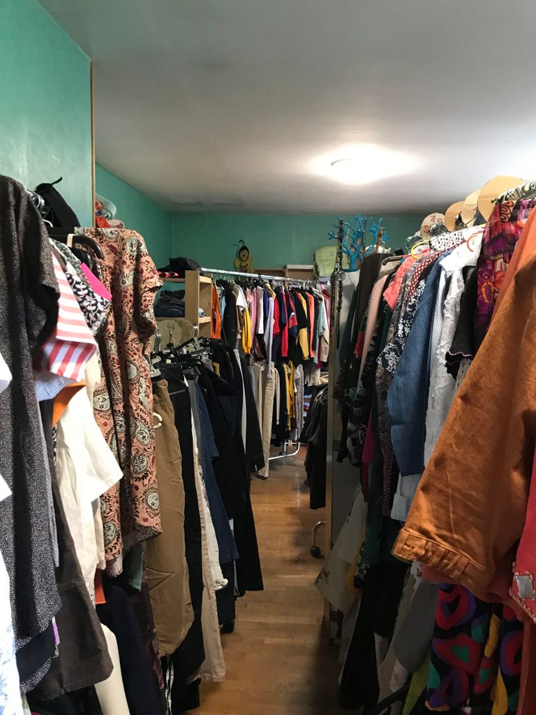 Christine et Agnès et 4 autres bénévoles s’occupent de cet espace qui ouvre ses portes les mardis matin et mercredis après-midi chaque semaine. Là aussi l’activité est intense. Il faut recevoir les vêtements, chaussures et autres accessoires, trier, présenter et organiser le déstockage. Une participation solidaire modique est demandée au public.