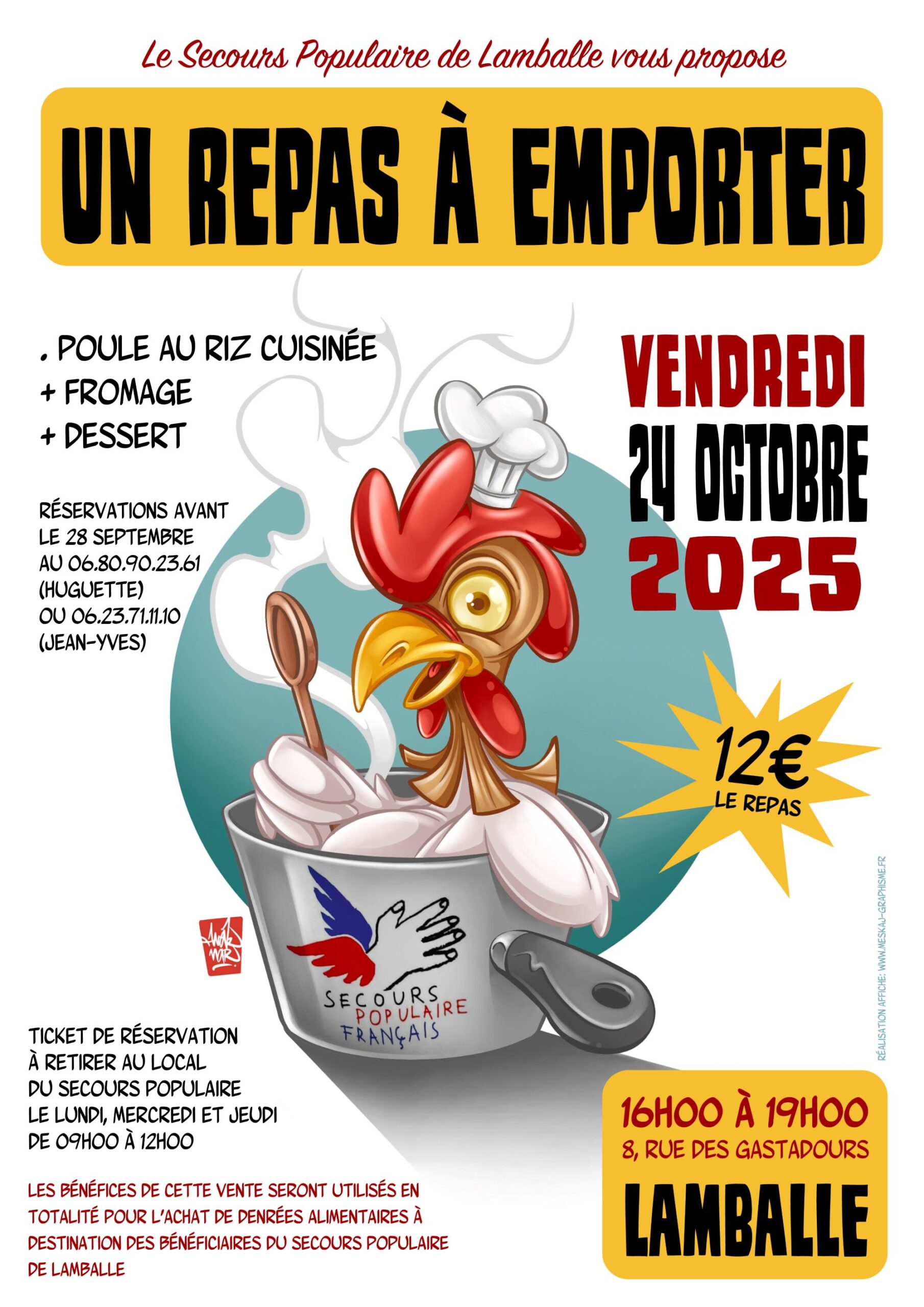 Le comité de Lamballe du Secours populaire français vous invite à commander des repas à emporter.