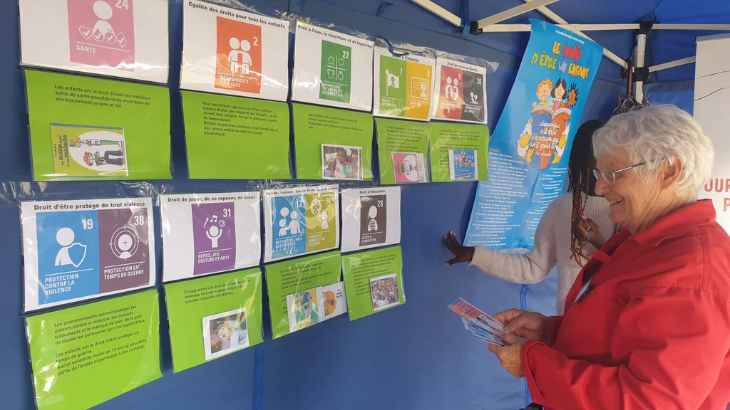 3 jeunes « Copain du Monde » animaient un espace de jeu sur le thème des droits de l’enfant. Elle s’adressait aux plus grands enfants. Le matériel sera utilisé pour la prochaine colonie Village Copain du Monde en Finistère cet été.