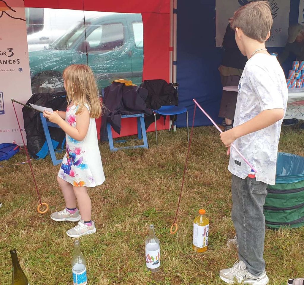 Trois jeux étaient proposés : « chamboule-tout », « encercler la bouteille » et « course de skis sur herbe ».