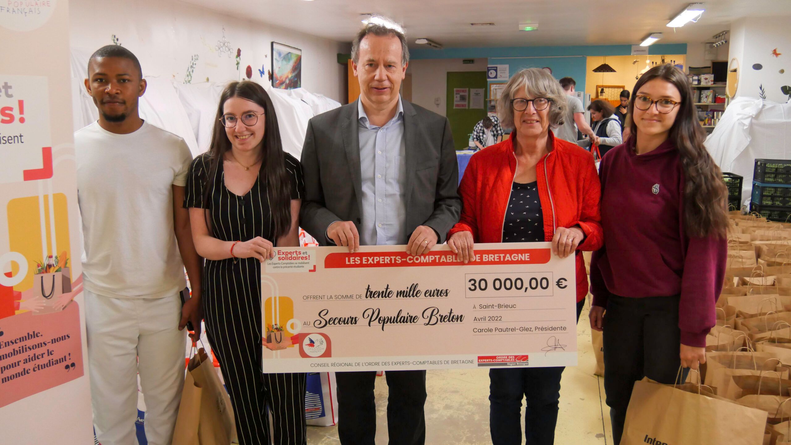 200 sacs remplis de produits alimentaires et d'hygiène ont été distribués par le Secours populaire aux étudiants de Saint-Brieuc, grâce à l'Ordre des Experts-Comptables de Bretagne. Ils ont collecté 30 000 € et contribué à des distributions également sur les pôles universitaires de Brest, Fougères, Lorient, Quimper, Rennes, Saint-Malo et Vannes.