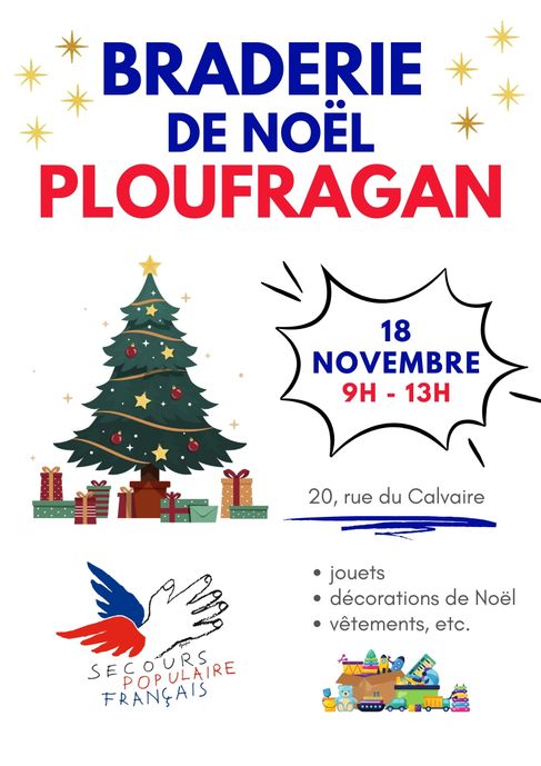 Le comité de Ploufragan du Secours populaire français vous invite à sa braderie de Noël. Vous trouverez une sélection de jouets et décorations de Noël, mise en avant par l’équipe ploufraganaise.